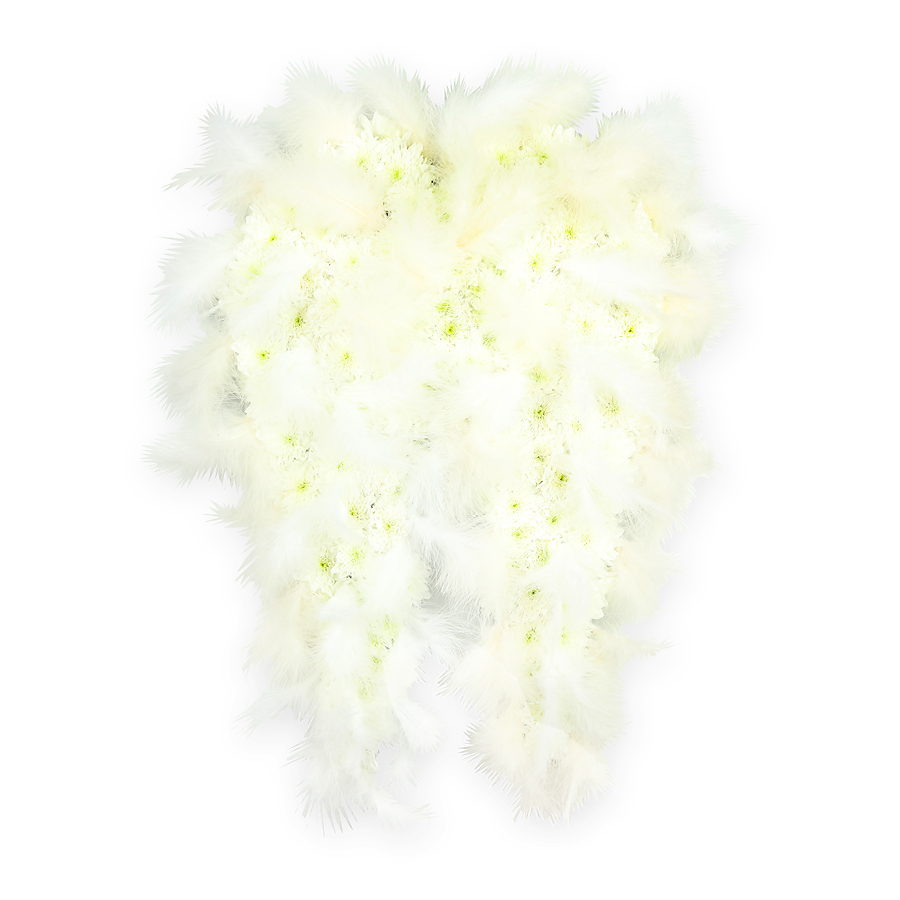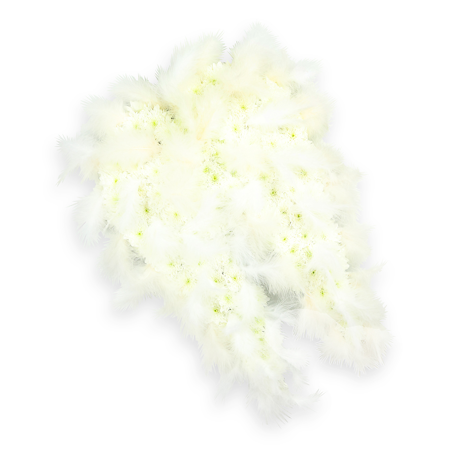 Express your heartfelt condolences with our beautiful white chrysanthemum and feather bouquet. This arrangement combines the purity of white flowers with the soft elegance of feathers, creating a unique and meaningful tribute.