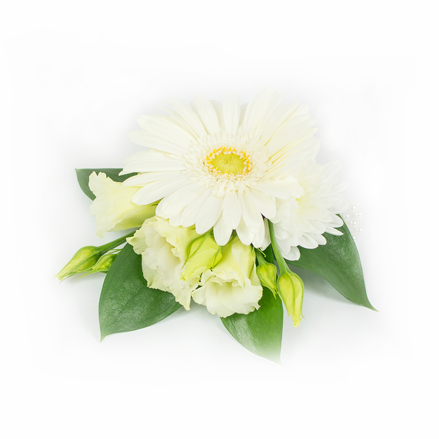 Enhance your look with our stylish white gerbera corsage, featuring a captivating arrangement of gerbera daisies, alstroemeria, and chrysanthemums. Each bloom is handpicked to ensure freshness and vibrancy for your special events.
